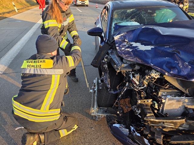 | Unfall auf der Bundesstraße 282 bei Schleiz: 3 Verletzte, 2 Fahrzeuge Schrott | |||