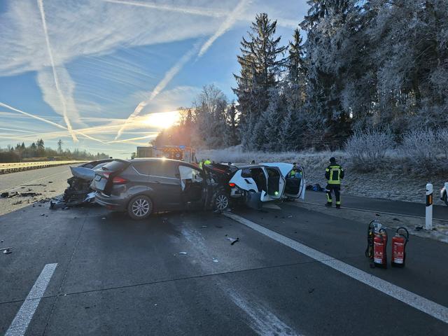 dramatischen Unfall verwickelt zu werden. Auf der Bundesautobahn 9 zwischen Schleiz und Bad Lobenstein waren am 21.12.2025 gegen 06:50 Uhr insgesamt 4 Fahrzeuge in einen (oder zwei nacheinander abgelaufenen) Unfall verwickelt worden. Auf über hundert Meter Länge waren nicht nur die Unfallfahrzeuge, sondern auch Trümmer, Glas und ausgelaufene Betriebsstoffe verteilt. Ein Notarzt und mehrere Rettungsteams kümmerten sich um die insgesamt 5 Patienten. Die Polizei nahm erste Unfallbilder auf und dann reinigten die Einsatzkräfte der Feuerwehr die dritte Fahrbahn, um den Verkehr wieder ins Rollen zu bekommen. Nach über drei Stunden konnte die Einsatzstelle an den Straßenbaulastträger übergeben werden, der noch allerhand Reinigungsarbeiten durchführen ließ. |