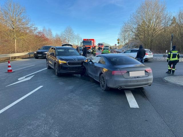Zu einem Verkehrsunfall mit 2 Pkw wurden die