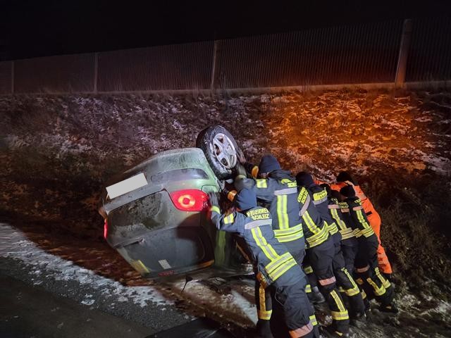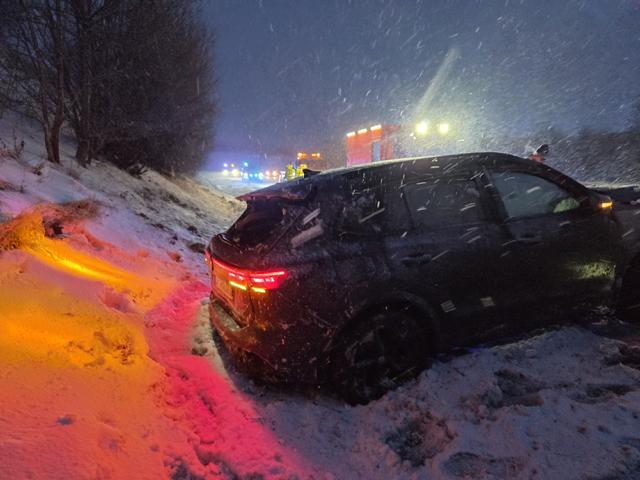 am 09.01.2026. Wahrscheinlich kam der Fahrzeugführer mit dem plötzlichen Übergang vom Sprühregen zum Schneefall nicht ganz klar, als er gegen 16:35 Uhr auf der Bundesautobahn 9 zwischen Schleiz und Bad Lobenstein nach rechts in den Hang fuhr und sich dabei mit seinem VW überschlug. Die anrückenden Einsatzkräfte von Polizei, Feuerwehr und Rettungsdienst hatte allerhand zu tun, den in einer unübersichtlich liegenden Unfallort zu sichern, zumal es auf der anderen Seite des Berges regnete und auf der Unfallseite schon Schnee fiel. Zum Glück wurde der Fahrzeugführer nicht schwer verletzt. |