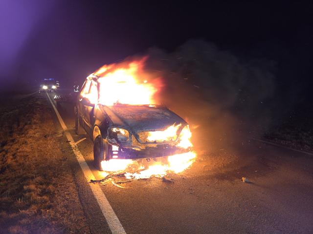 Zu einen Fahrzeugbrand wurden die Einsatzkräfte der