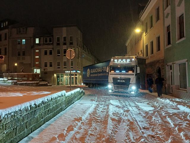 Der aktuelle Wintereinbruch sorgte bisher noch zu keinen großen Ereignissen. Die Einsatzkräfte der Schleizer Feuerwehren waren bisher dennoch zu insgesamt drei Einsätzen unterwegs. Noch vor Mitternacht waren die Kräfte zur Bundesautobahn 9 in beiden Fahrtrichtungen zu je einem Einsatz unterwegs. In beiden Fällen hatten zuvor Fahrzeuge, vermutlich wegen der Witterungsbedingungen, die Fahrspuren verlassen und waren jeweils durch den Graben in einen Hang gerutscht. In beiden Fällen wurde niemand verletzt. Am Morgen, um 07:07 Uhr, wurde die Feuerwehr zur Unterstützung der Bergung eines festgefahrenen Lastzuges auf dem Markt in Schleiz alarmiert. Noch bevor die Einsatzkräfte ausrückten hatte sich der Lastzug wieder selbst freigewühlt. Der Einsatz wurde somit abgebrochen. |