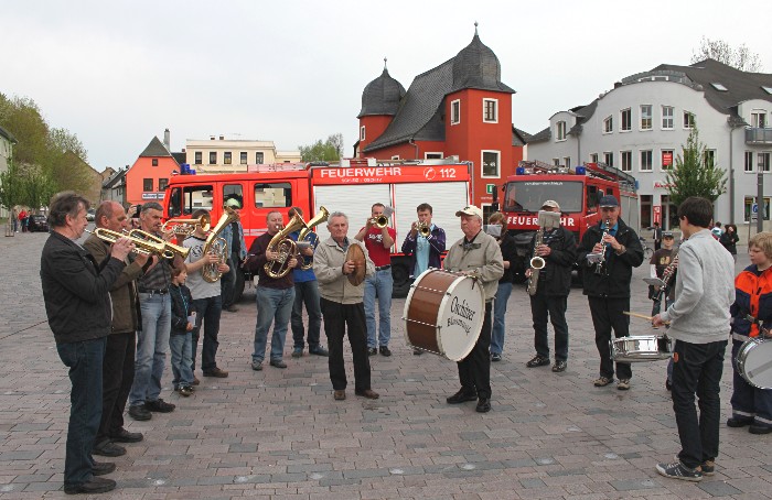 | Das Schleizer Maifeuer unterscheidet sich wesentlich zu allen Feuern ringsum. Während die meisten Orte auf die Feuer aus Reißig und auch anderen brennbaren Material bauen, lassen sich die Schleizer Feuerwehr und dessen Verein das Traditionsfeuer richtig was kosten. Am 29. April bauten die Kameraden mühevoll die Feuerstelle auf und bewachten Diese auch die gesamte Nacht. Leider grassiert immer noch die Unart, böswillig Maifeuer vorzeitig anzuzünden, was auch oftmals Einsätze der Feuerwehren nach sich zieht. | ||||