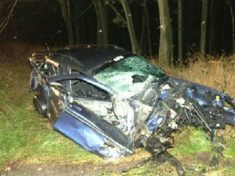 eine Person verletzt nach Kollision mit LKW, PKW wurde total zerstört, Trümmermeer auf B 282 im Bereich Schauerschacht
