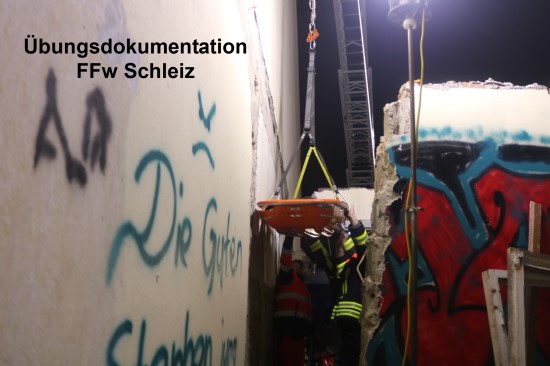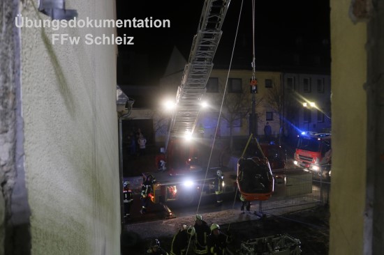 Funkmeldeempfänger. Das es sich hierbei um eine schon länger vorbereitete Übung handelte, war den Kameraden später am Einsatzort auch klar geworden. Die Einsatzmeldung für die Möschlitzer und Schleizer Einsatzkräfte war durchaus Besorgniserregend. "Teileinsturz eines Gebäudes mit mindestens zwei vermissten Personen" war die Meldung der in die Übung integrierten Mitarbeiter der Rettungsleitstelle an die 18:12 Uhr ausrückenden Einsatzkräfte. Ebenfalls mit alarmiert waren 2 Rettungswagen und ein Notarzteinsatzfahrzeug des DRK. Das Übungsszenario hatte am Vormittag der Schleizer Stadtbrandmeister zusammen mit den Mitarbeitern der Firma DEMO-Bau aus Neustadt/ Orla durchgesprochen und vorbereitet. Die Mitarbeiter präparierten während des Einsatzes der Feuerwehr auf der Bundesautobahn den Abrissgebäudeteil am Schleizer Schulplatz und "begruben" die Übungspuppen unter Bauschutt. Hauptaugenmerk der Übung lag auf der Eigensicherung der Kameraden am Einsatzort, auf der Suche und der schonenden Rettung der "Personen". Wegen des vorher längeren Einsatzes wurde der gesamte Übungsverlauf in Aufwand und möglicher Szenarien etwas entschärft. Die mit Mehrgasmessgerät und Wärmebildkamera vordringenden Einsatzkräfte lokalisierten binnen weniger Minuten die vermissten Personen unter den Trümmern des eingestürzten Gebäudeteils. Gleichzeitig waren andere Einsatzkräfte mit der Realisierung der Brandsicherheit beschäftigt. Von mehreren Kameraden wurde inzwischen die Drehleiter umgebaut. Der Rettungskorb musste abmontiert und ein Rollgliss anmontiert werden. Damit konnte die Schleifkorbtrage in die Engstelle des Einsatzortes von oben her zu den "Verletzten" manövriert werden. Nacheinander wurden die "Personen" gerettet bzw. geborgen. Die Auswertung der Übung erfolgte direkt am Unglücksort durch den Schleizer Stadtbrandmeister. Dabei wurden nochmals wichtige Dinge besprochen, die bei ähnlichen Unglücken auf die Einsatzkräfte zukommen können. Die Feuerwehr Schleiz verfügt über einen Rüstwagen. Dieser kommt sowohl in Stufe 3 Landkreisweit (für schwere technische Hilfeleistungen), auf der Bundesautobahn 9 sowie im Katstrophenschutz zum Einsatz. Daher ist es besonders wichtig, auch Übungen durchzuführen, die ähnlichen Charakter des dargestellten Szenarios haben. Hauseinstürze können neben Bauarbeiten, durch Explosionen oder auch durch (bei uns eher selten vorkommenden) Erdbeben erfolgen. Wir bedanken uns bei der Firma DEMO-Bau aus Neustadt, dem Landratsamt Saale-Orla, den Mitarbeitern der DRK- Rettungsdienstes und der Rettungsleitstelle in Saalfeld für die gute Zusammenarbeit. |
