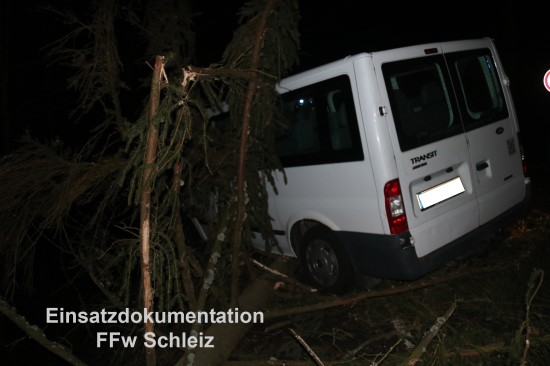 umgehend zum Einsatzort um den Baum zu beseitigen und das Fahrzeug zu